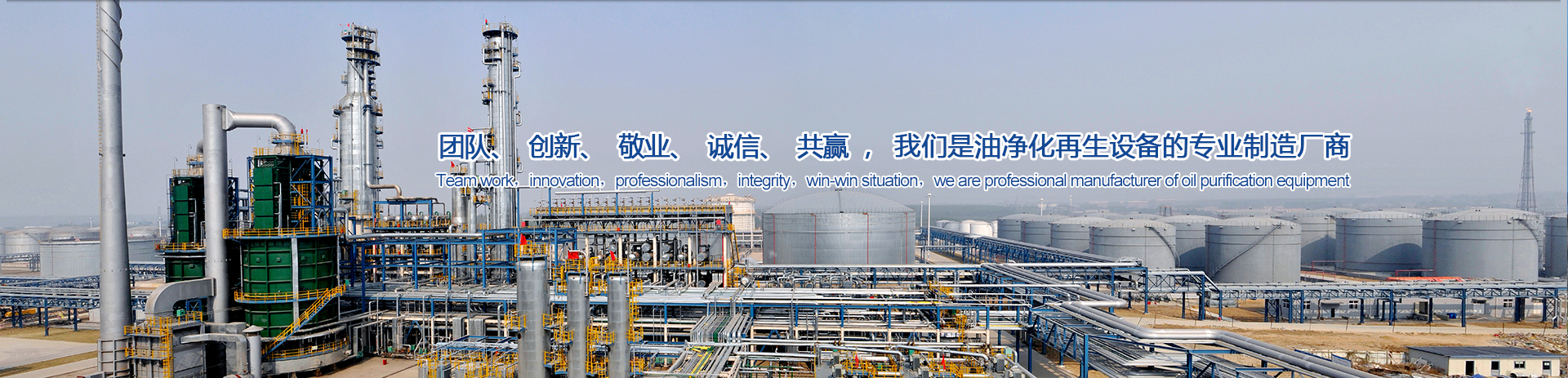 Since established,Junneng always presents itself as market-oriented.Based on the high-tech development we use our human source and technology as our advantages and take "Be Part Of The Solution,Not The Pollution." as our responsibility.Our company has developed into an oil recycling & regeneration production base.